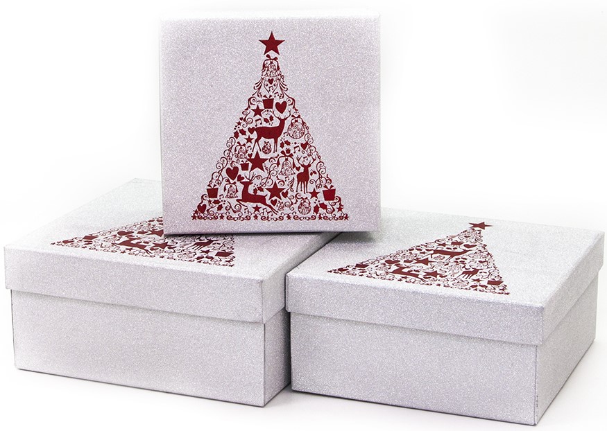 Набор коробок Стильная елочка, Серебро, с блестками, 20*20*9 см, 3 шт.