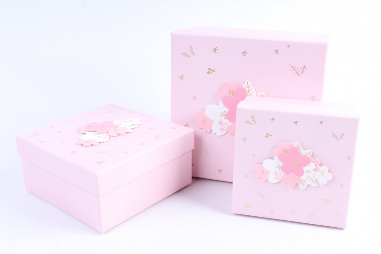 Набор подарочных коробок из 3шт- Квадрат с апликацией розовый 22*22*10см К51