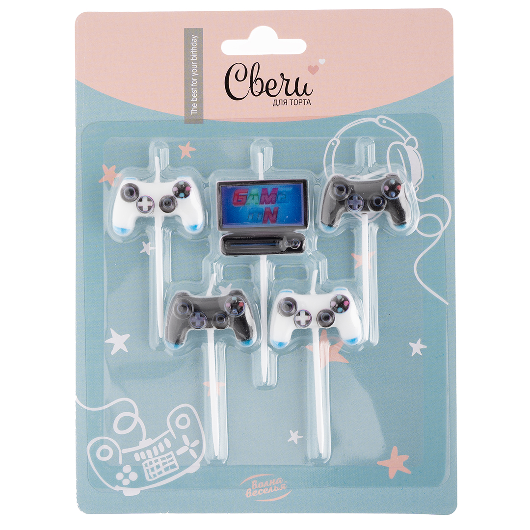 Набор свечей Фигура, Геймпад, Игра начинается, 3*2 + 4 см, 5 шт. с держат.