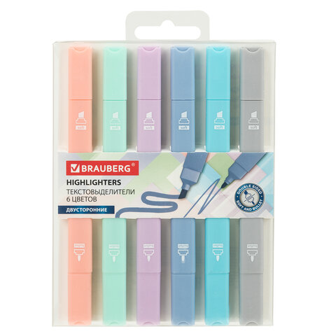 Набор текстовыделителей двусторонних 6 ПАСТЕЛЬНЫХ ЦВЕТОВ, BRAUBERG «Macaroon», линия 1-5 мм, 1 шт.