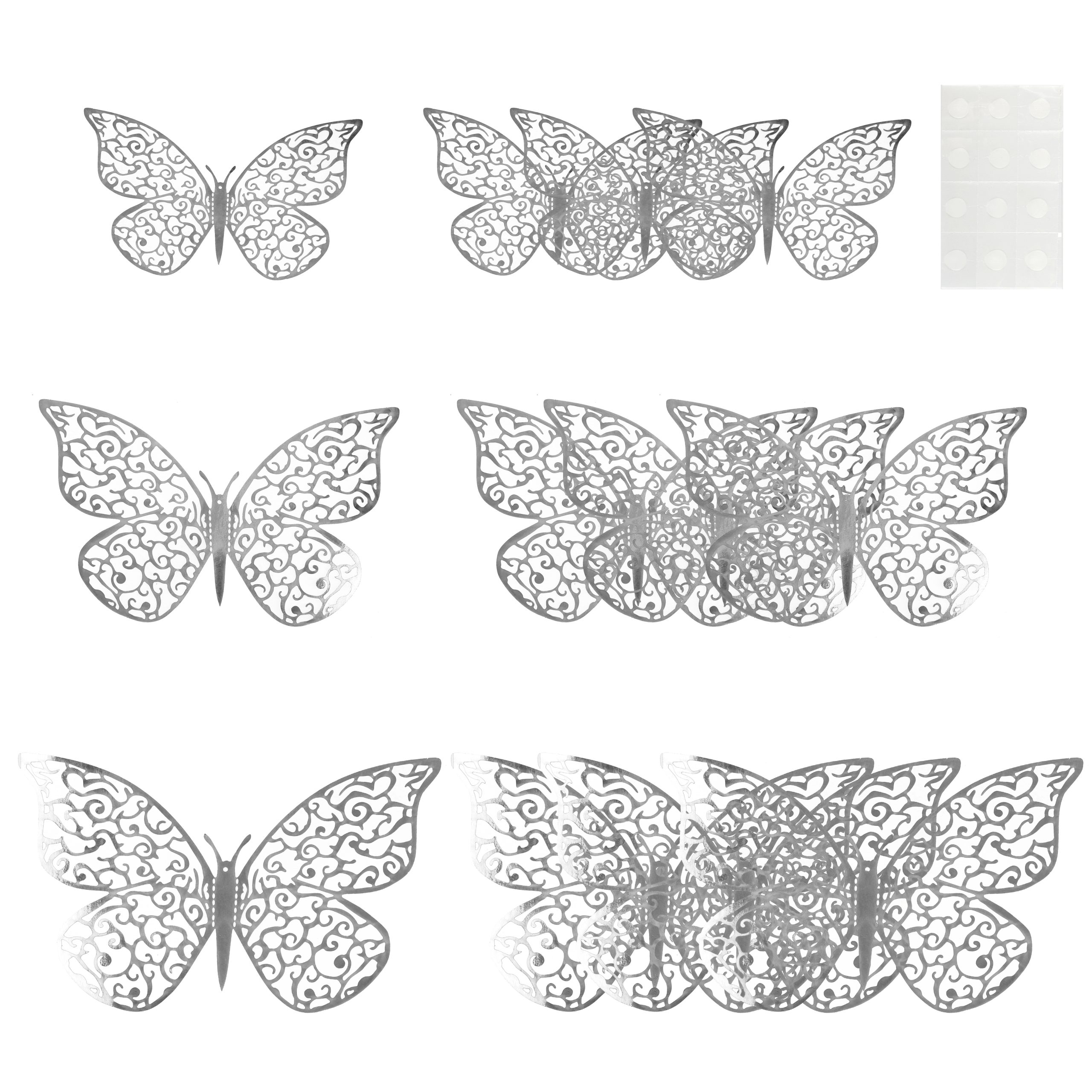 Наклейки Ажурные бабочки, Серебро, 8-12 см*12 шт, 1 упак.
