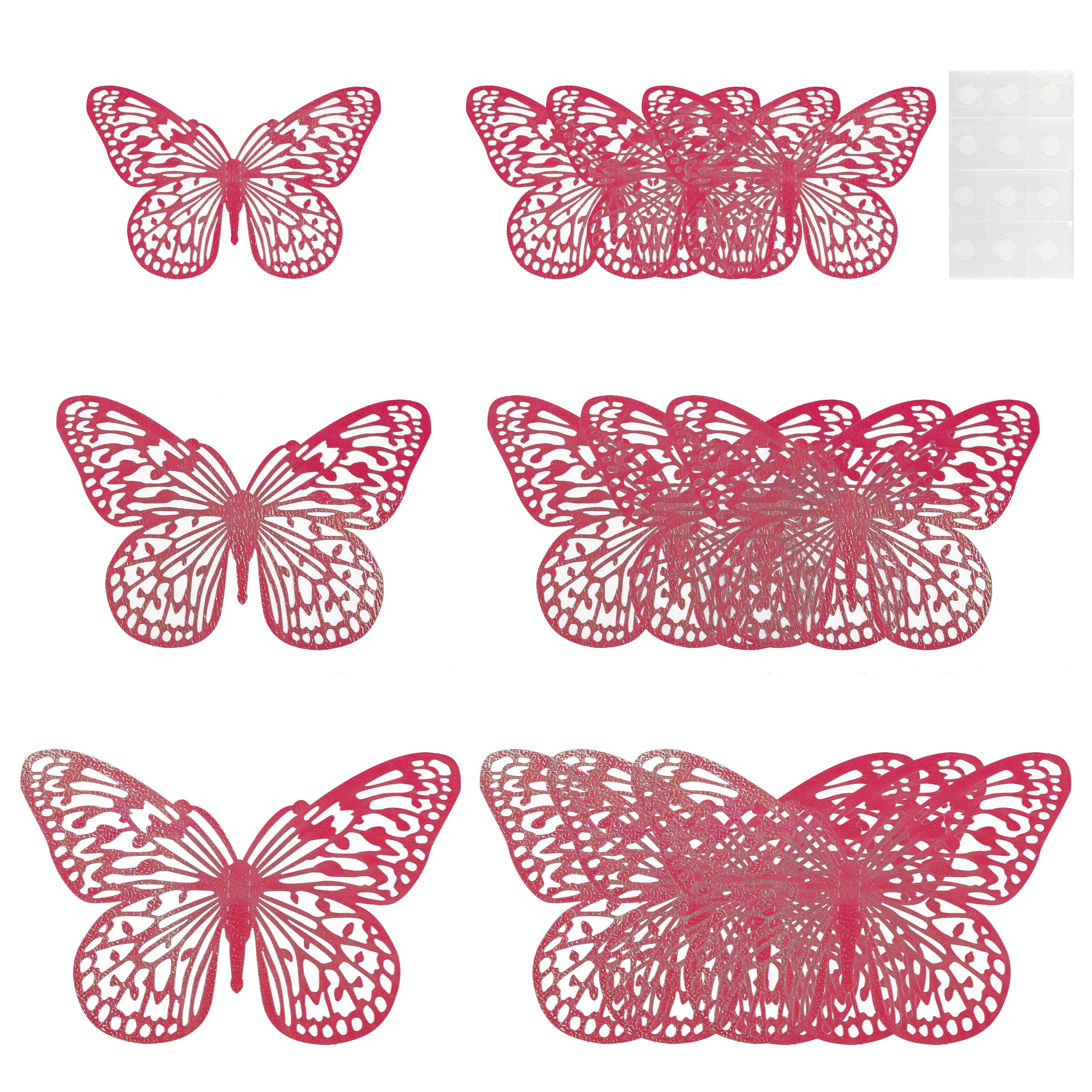 Наклейки Нежные бабочки, Фуксия, Голография, 8-12 см*12 шт, 1 упак