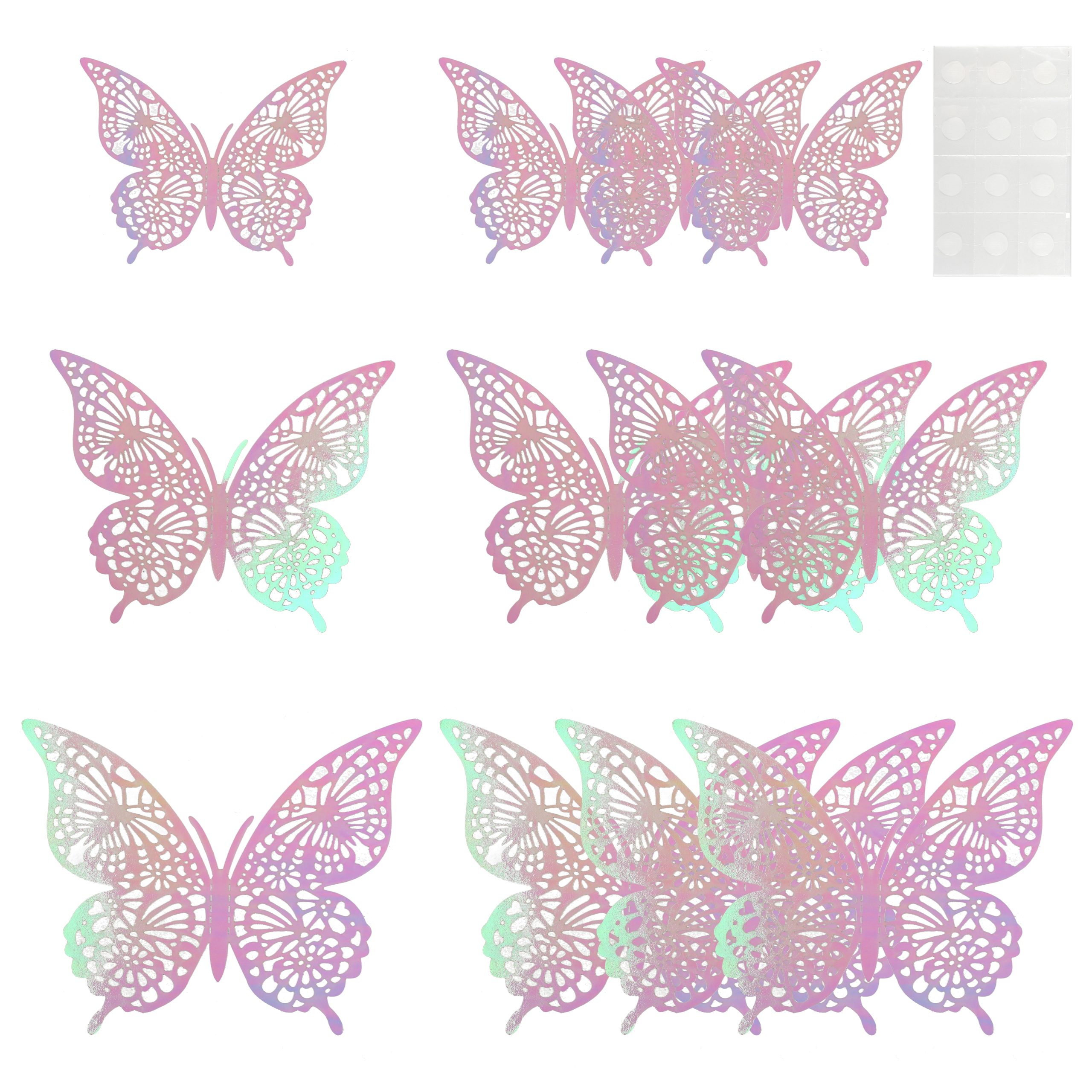 Наклейки Волшебные бабочки, Белый, Голография, 8-12 см*12 шт, 1 упак.