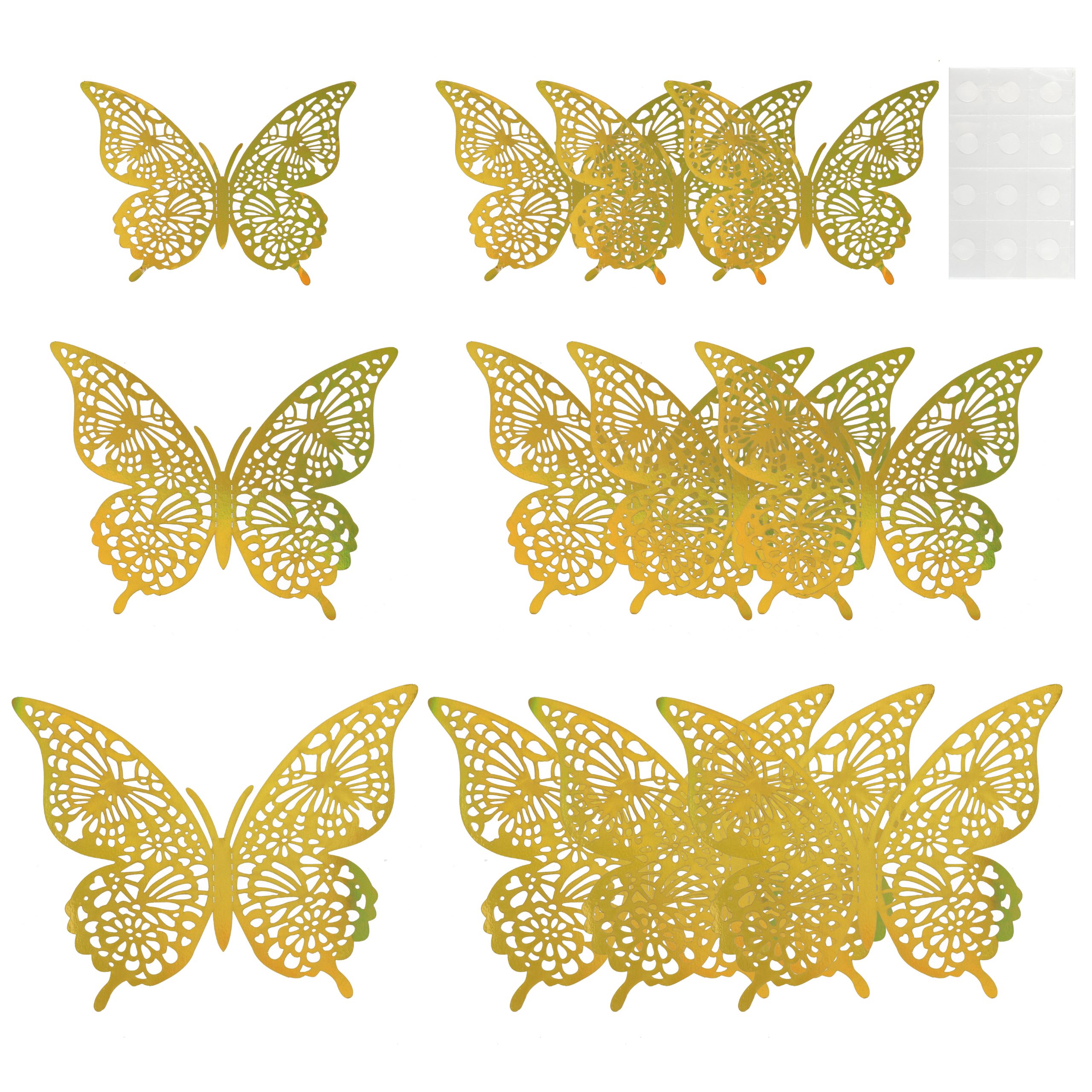 Наклейки Волшебные бабочки, Золото, Голография, 8-12 см*12 шт, 1 упак.
