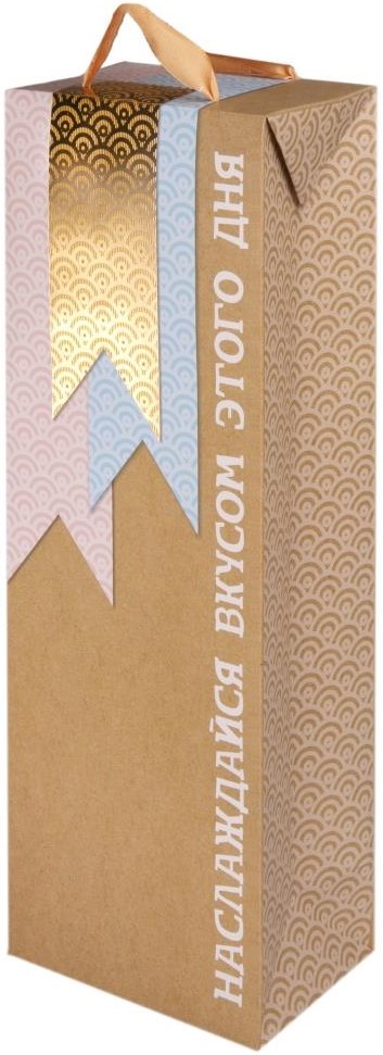 Пакет-коробка подарочный для вина, Наслаждайся вкусом этого дня, Крафт, Металлик, 35*13*8 см, 1 шт.