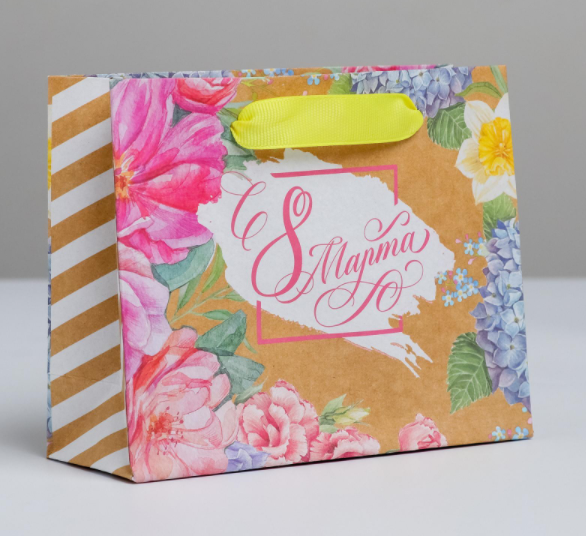 Пакет крафтовый горизонтальный «С 8 Марта», S 15 х 12 х 5,5 см, 1 шт