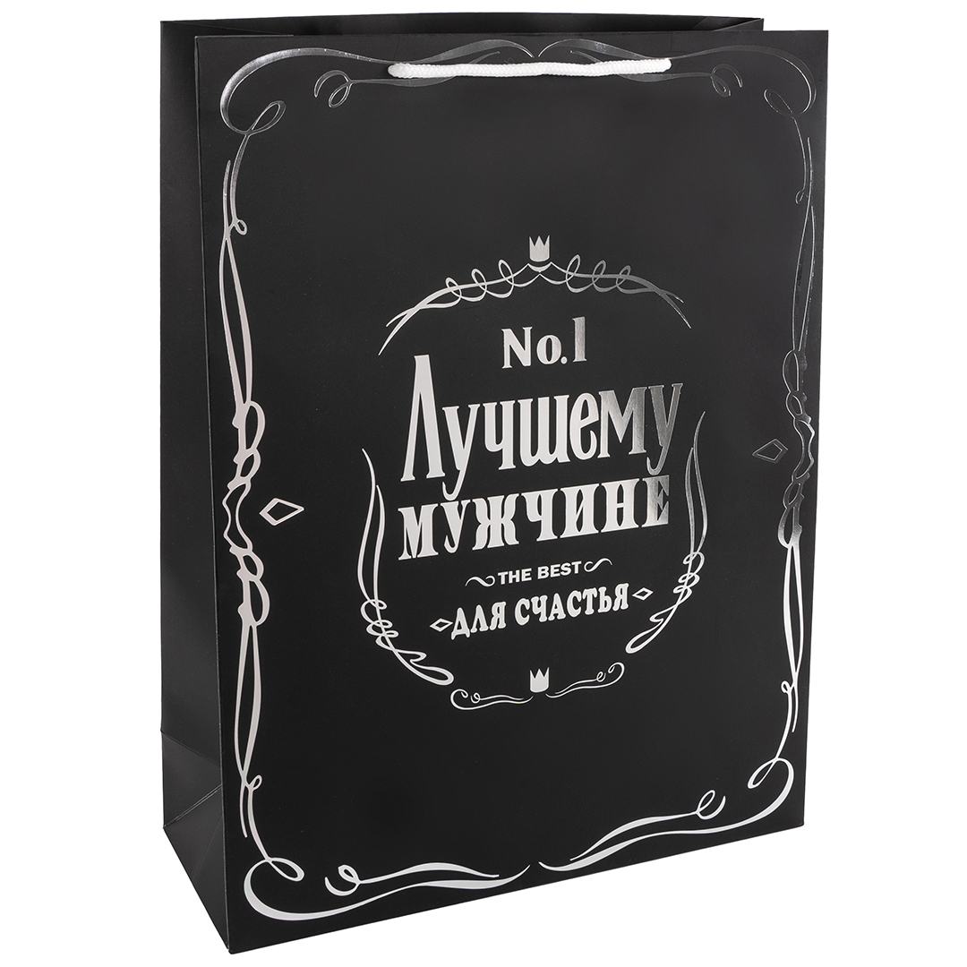 Пакет подарочный, 210гр, Лучшему Мужчине, Черный, Металлик, 23*18*10 см, 1 шт.