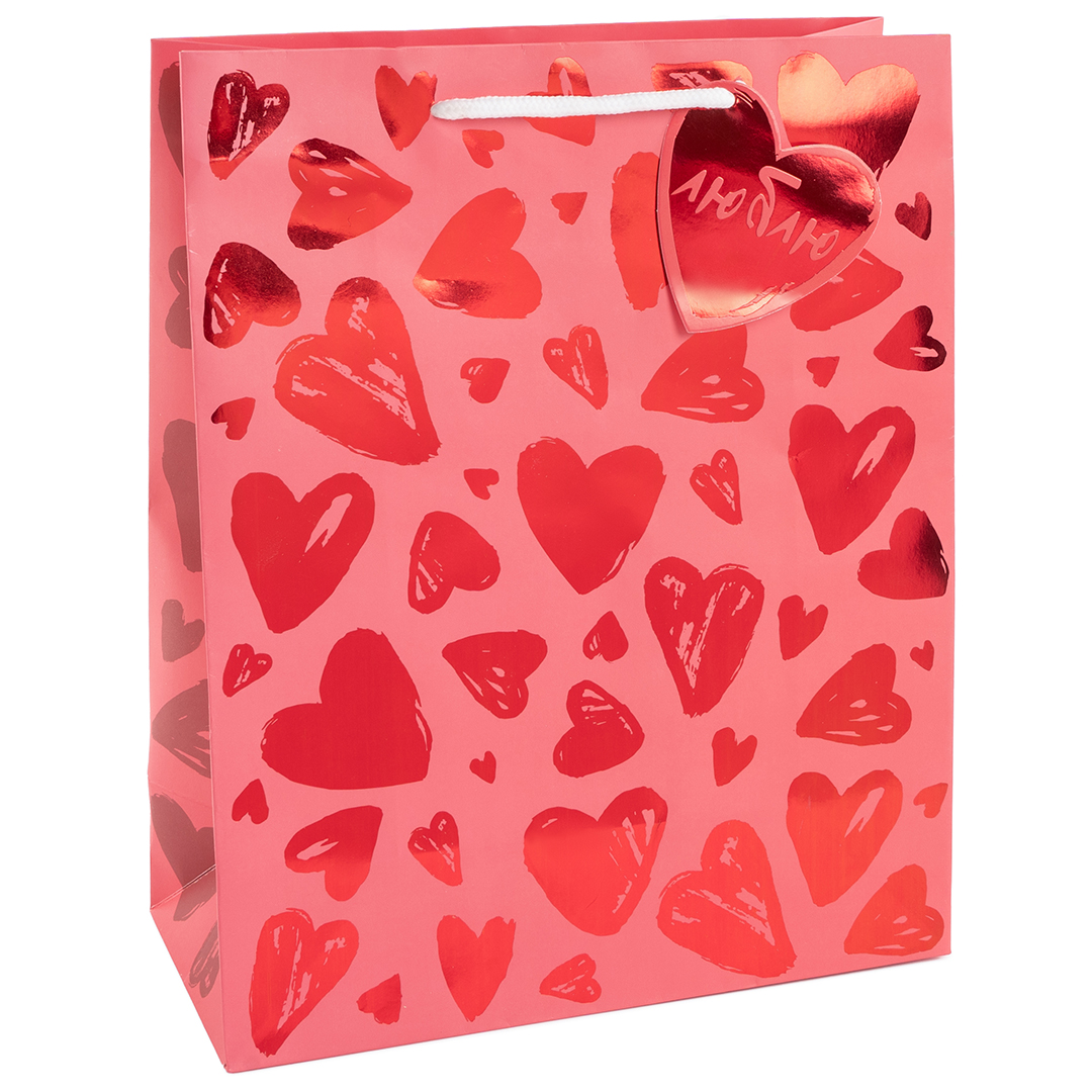 Пакет подарочный, 210гр, Множество сердец, Металлик, 41*31*12 см, 1 шт.
