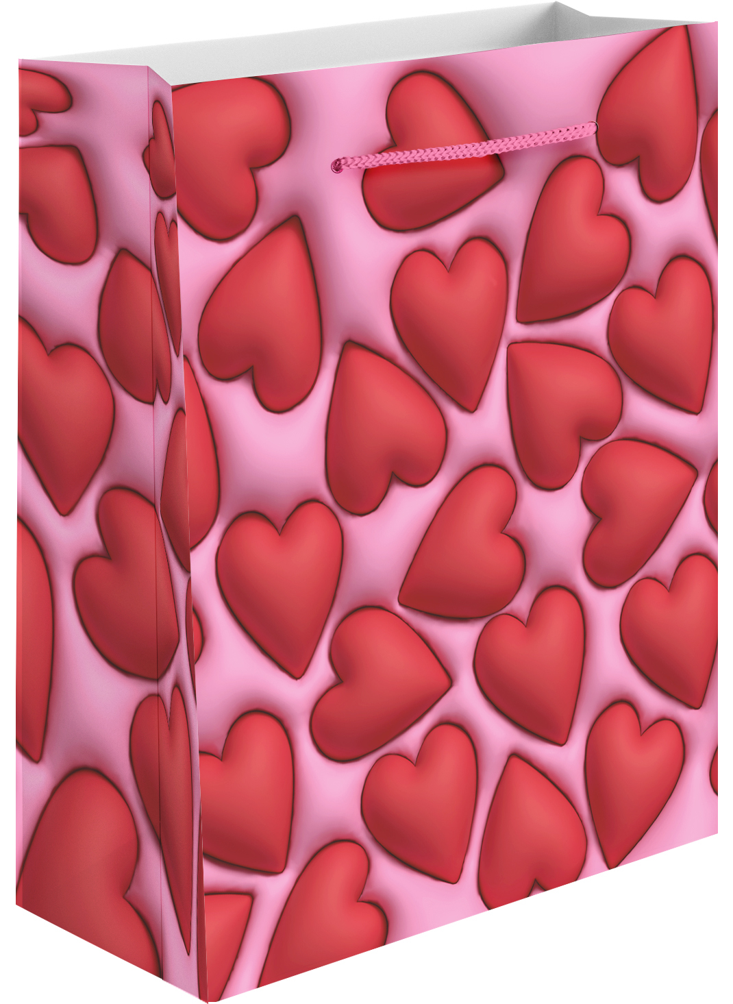 Пакет подарочный, 210гр, Объемные сердца, 16*12*7 см, 1 шт.