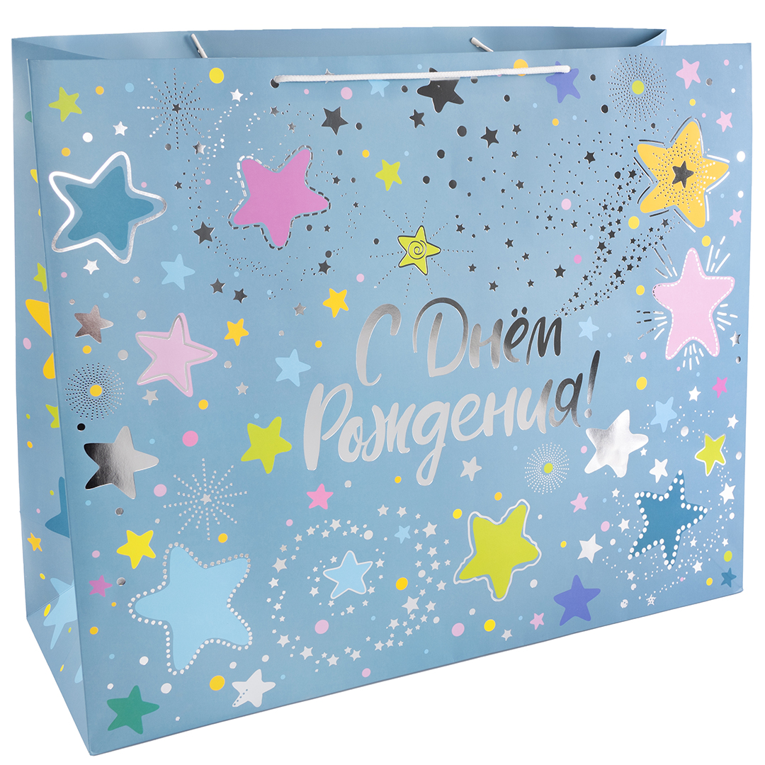 Пакет подарочный, 210гр, С Днем Рождения! (яркие звезды), Металлик, 31*41*12 см, 1 шт.