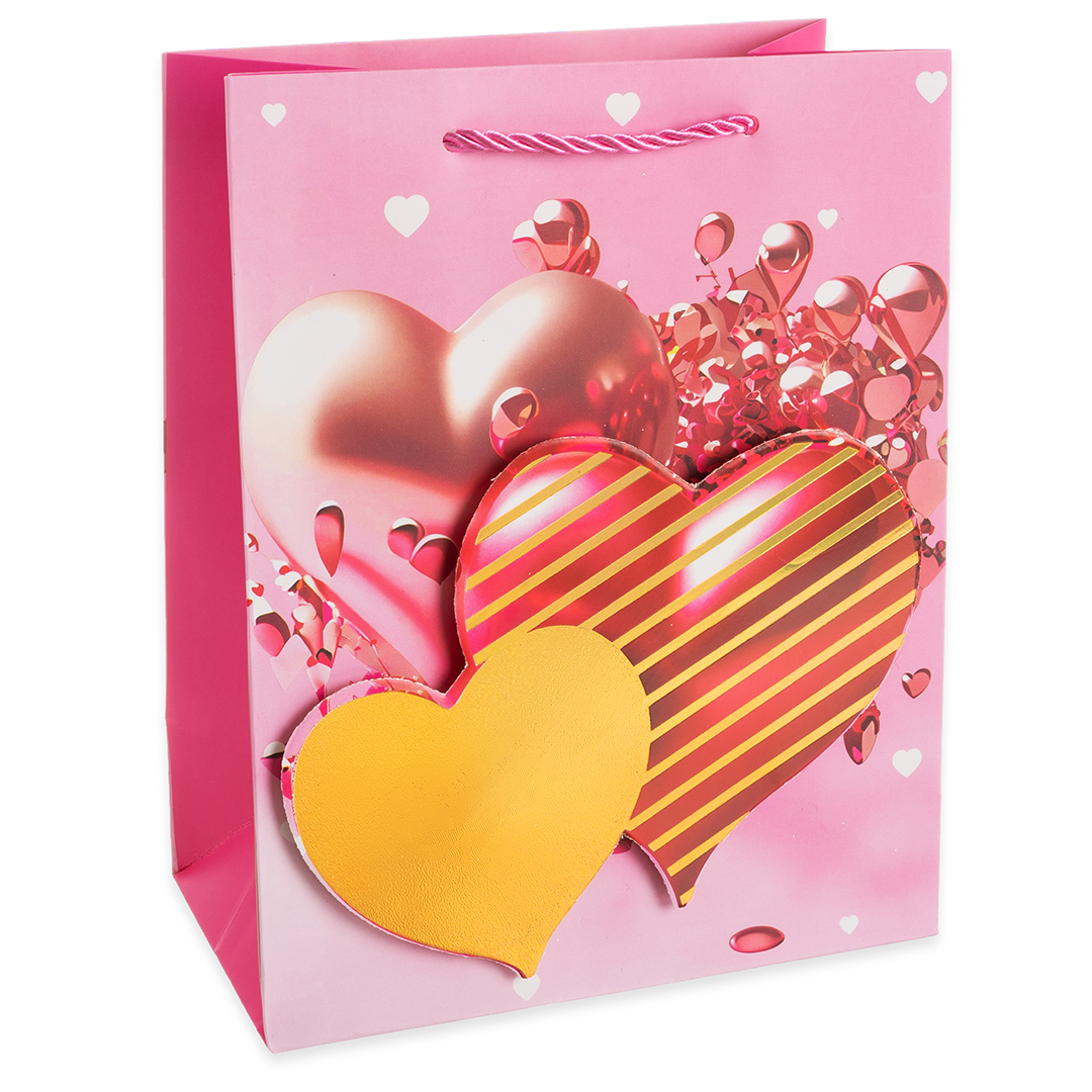 Пакет подарочный, 210гр, Тысяча сердец, Дизайн №3, Розовый, 41,5*30*12 см, 1 шт.