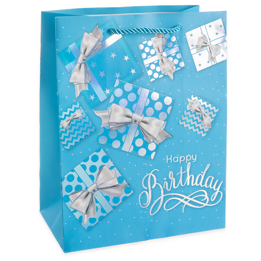 Пакет подарочный, Блестящий День Рождения, Дизайн №2, Голубой, Металлик, 23*18*10 см, 1 шт.