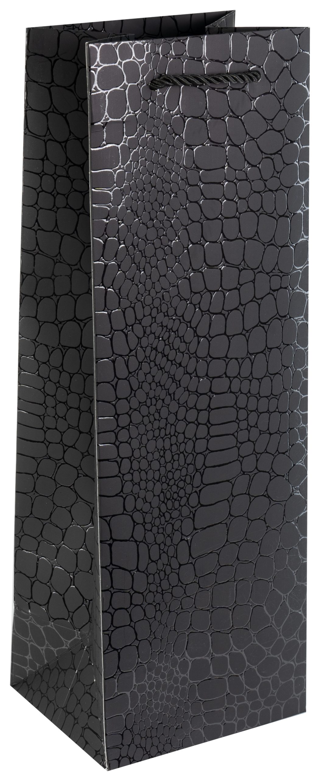 Пакет подарочный для вина, 210гр, Кожа крокодила, Черный, Металлик, 35*12*10 см, 1 шт.