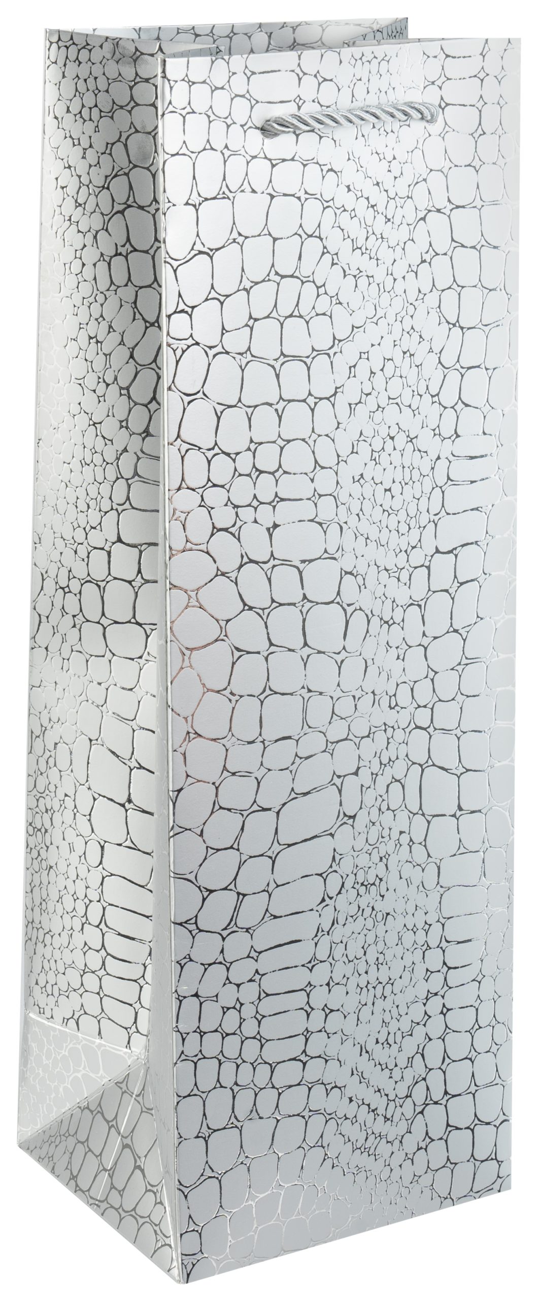 Пакет подарочный для вина, 210гр, Кожа крокодила, Серебро, Металлик, 35*12*10 см, 1 шт.