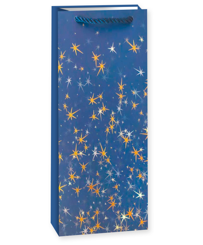Пакет подарочный для вина, 210гр, Тысячи созвездий, Дизайн №2,Синий/Золото,Металлик,36*12*9 см, 1 шт
