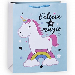 Пакет подарочный Единорог и радуга, Светло-голубой, 31*42*12 см