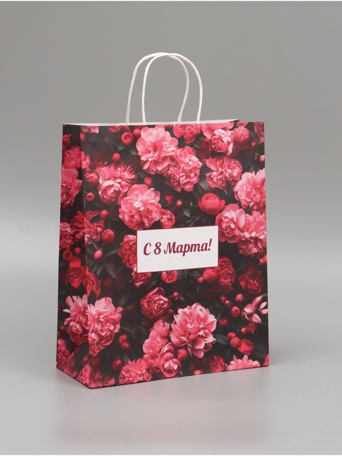 Пакет подарочный крафт «С 8 Марта» 25×12×32 См, 1 шт.