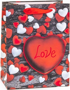 Пакет подарочный, Любовь, Конфетти сердец, Красный, Металлик, 32*26*12 см, 1 шт.