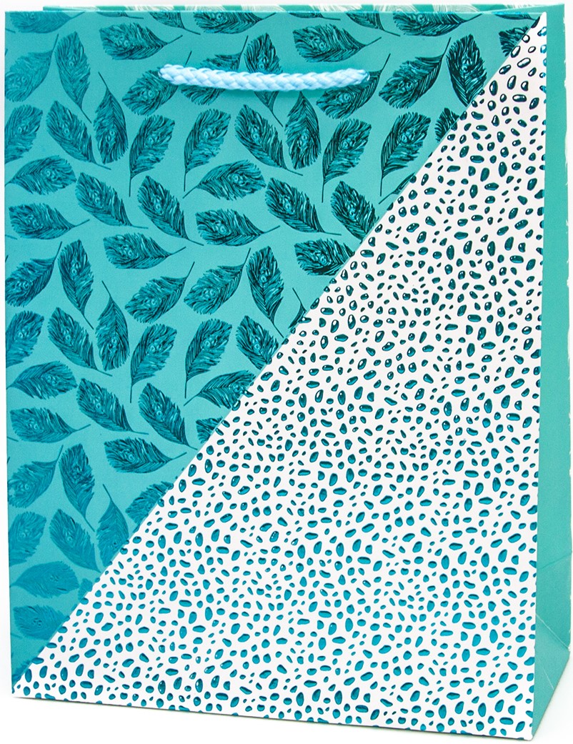 Пакет подарочный, Нежные перья, Бирюзовый, Металлик, 32*26*10 см, 1 шт.