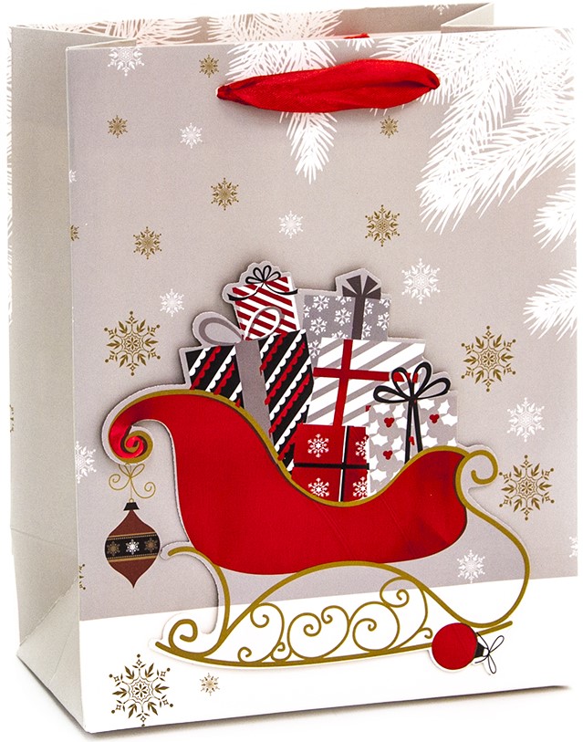 Пакет подарочный, Новогодние санки с подарками, Металлик, 23*18*10 см, 1 шт.