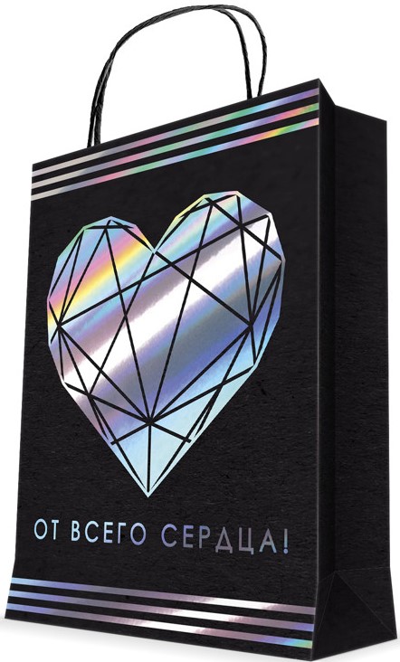 Пакет подарочный, От Всего Сердца!, Черный, Голография, 23*18*10 см, 1 шт.