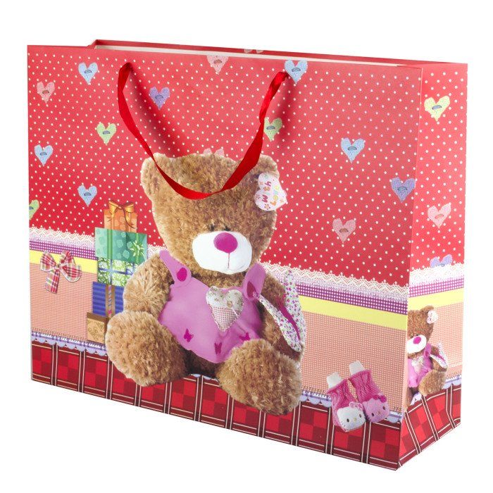 Пакет подарочный «Плюшевый мишка» Красный / 50*40*15см
