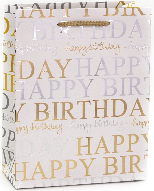 Пакет подарочный, С Днем Рождения! (стильные буквы), Золото, Металлик, 23*18*8 см, 1 шт.