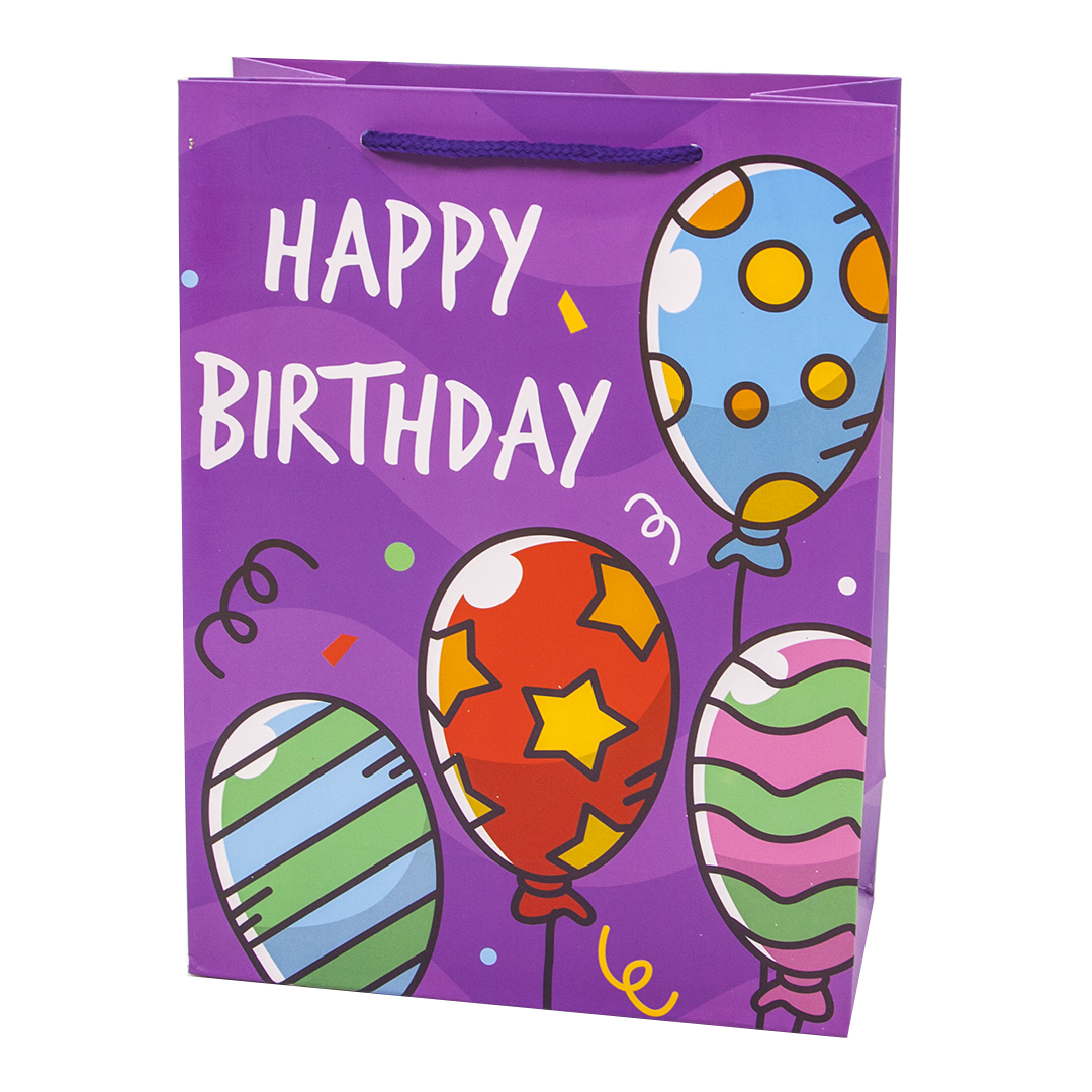 Пакет подарочный, С Днем Рождения! (яркие шарики), Фиолетовый, 24*18*9 см, 1 шт.