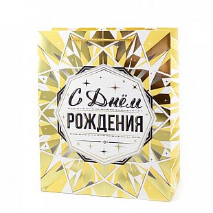Пакет подарочный «С Днём рождения. Золото» Тиснение фольгой / 26*32*12 см