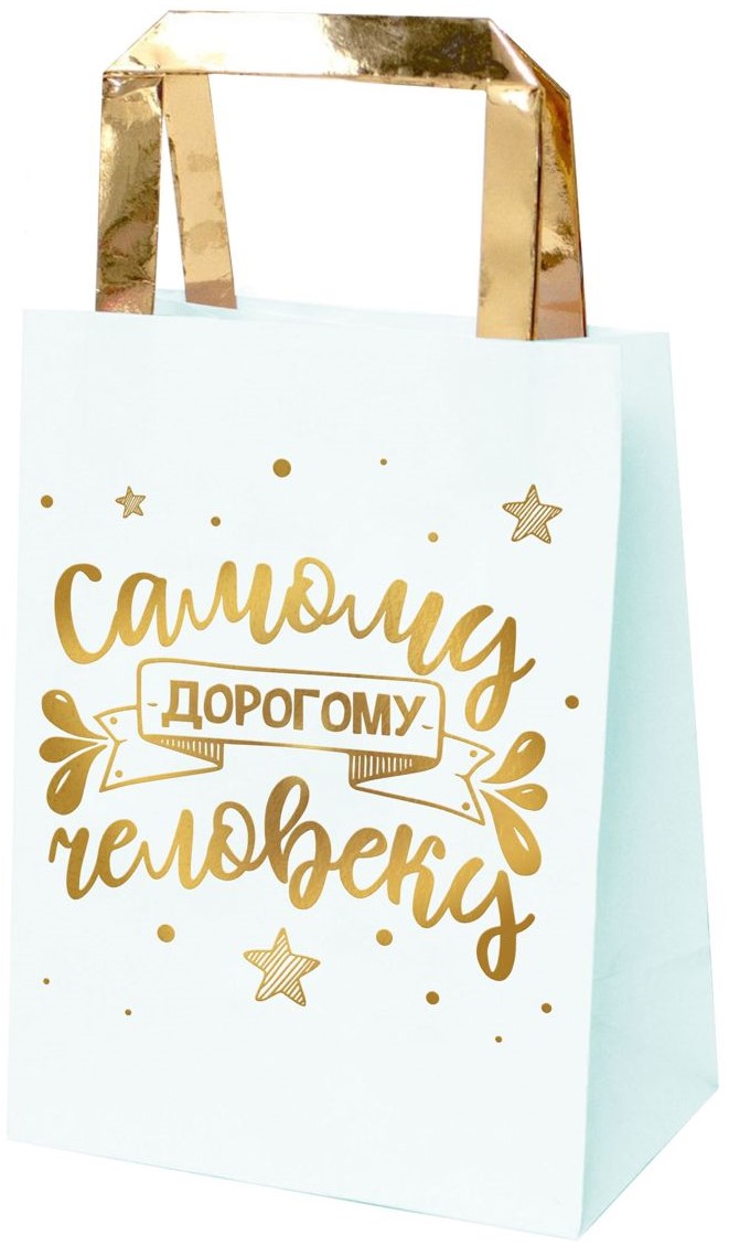Пакет подарочный, Самому Дорогому (золотые звезды), Мятный, Металлик, 32*26*13 см, 1 шт.