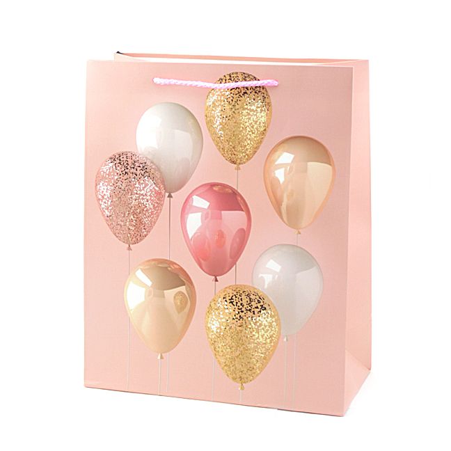 Пакет подарочный, С Днем Рождения! (воздушные шарики), Розовый, Металлик, 23*18*10 см, 1 шт.