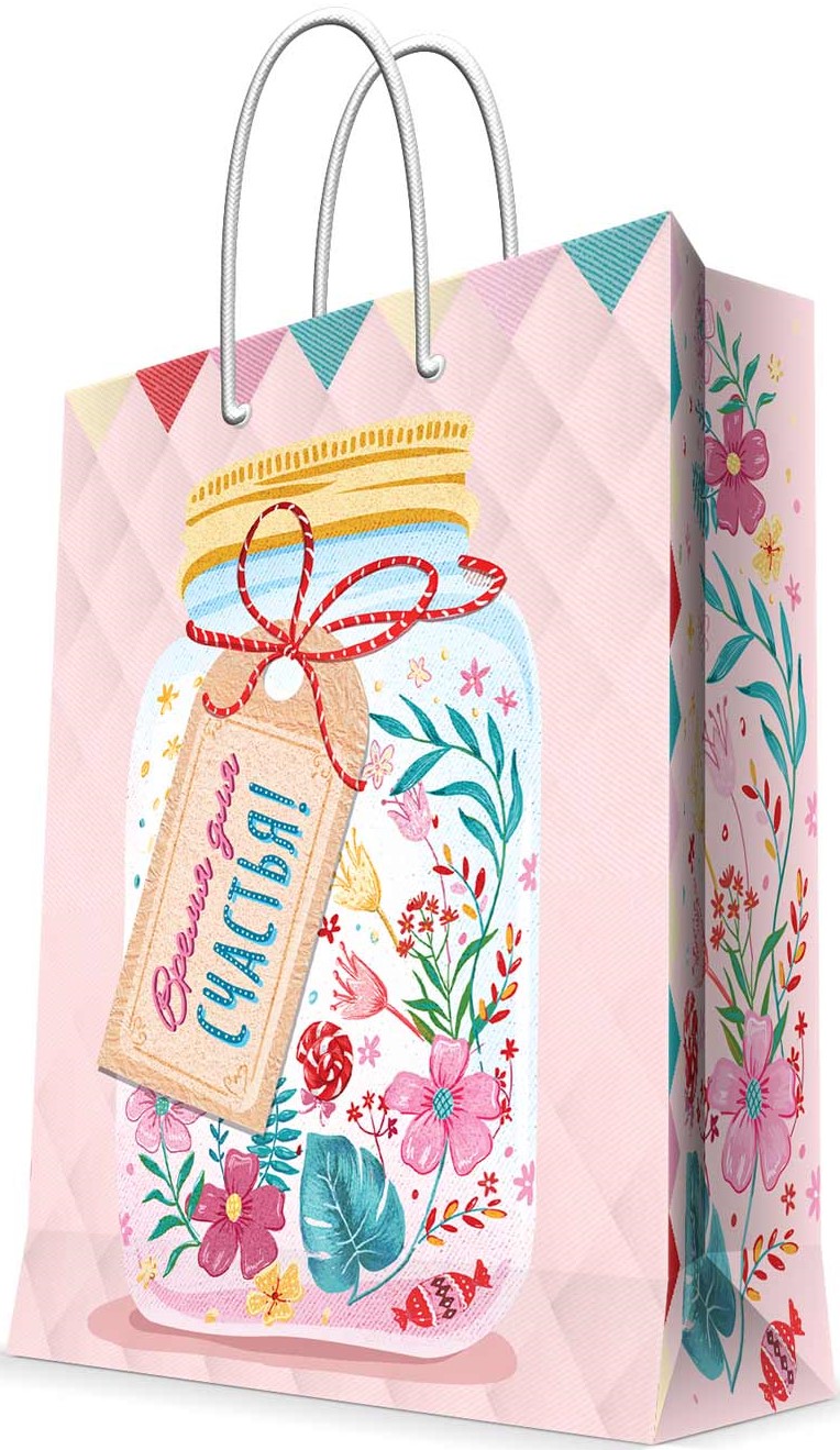 Пакет подарочный, Время для Счастья! (цветы), Розовый, 23*18*10 см, 1 шт.