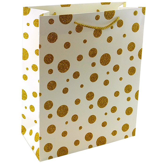 Пакет подарочный «Золотые кружки на белом» с глиттером / 26*32*12см