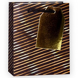 Пакет подарочный, Золотые полосы, Черный, 32*26*12 см, 1 шт.