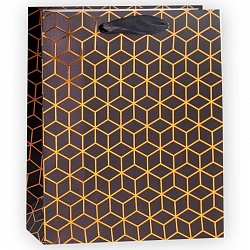 Пакет подарочный, Золотые ромбы, Черный, 42*31*12 см, 1 шт.