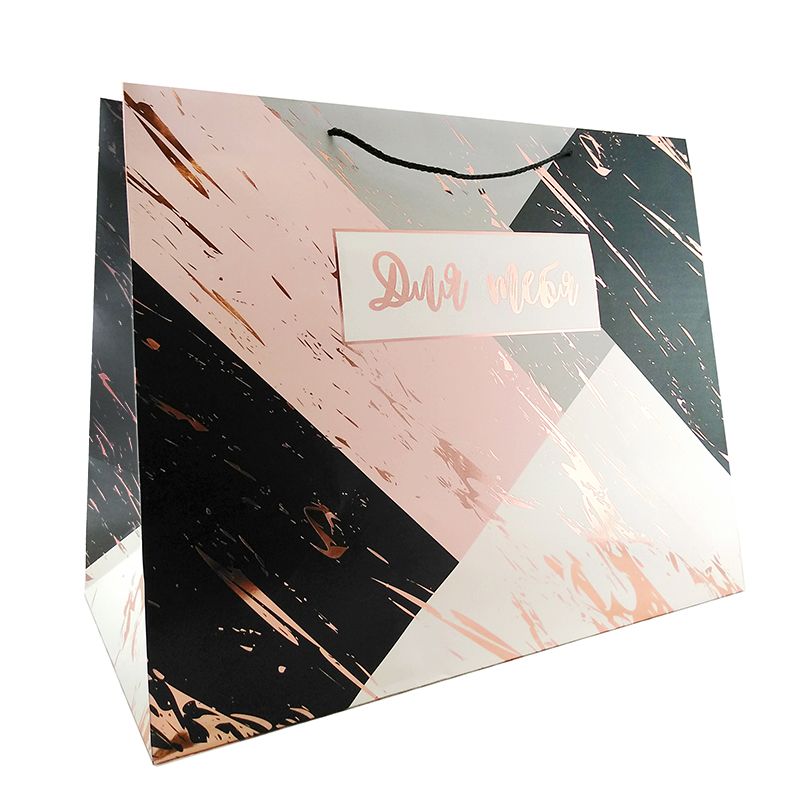 Пакет подарочный «Золотые штрихи на мраморе» Тиснение фольгой / 50*40*25 см