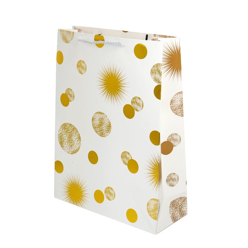 Пакет подарочный «Золотые точки», Белый, с тиснением фольгой, 31*41*12 / 1 шт /