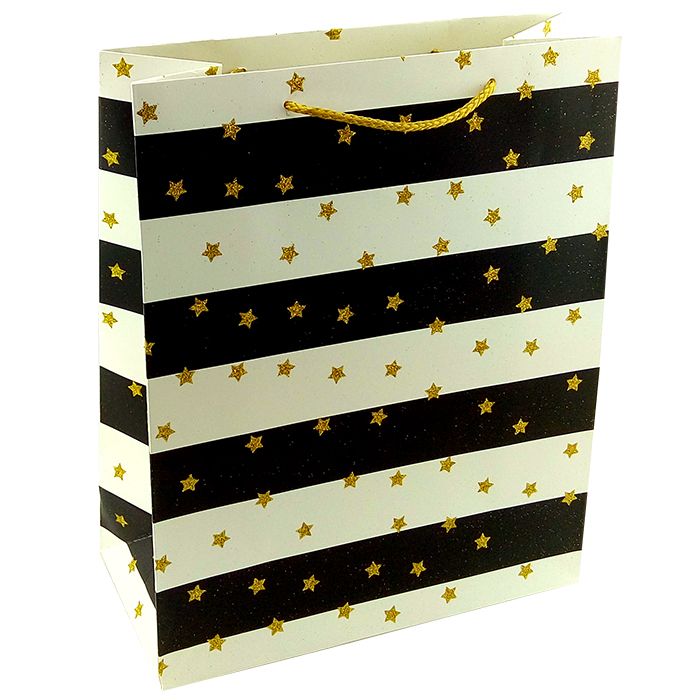 Пакет подарочный «Золотые звездочки на черно-белом» с глиттером / 26*32*12 см