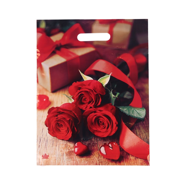 Пакет «Три красные розы» полиэтиленовый с вырубной ручкой, 31×40 см, 60 мкм, 1 шт.