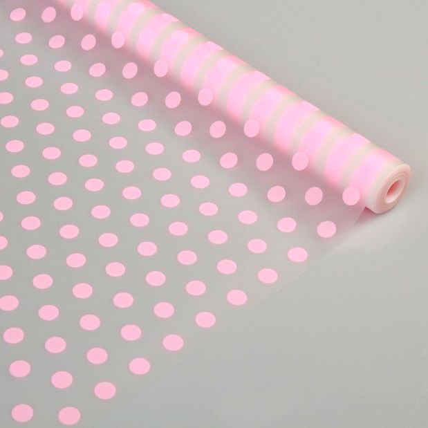 Пленка упаковочная Горошек на матовой плёнке Ярко-розовый / рулон 60 см*10 м, 200 г, 1 шт
