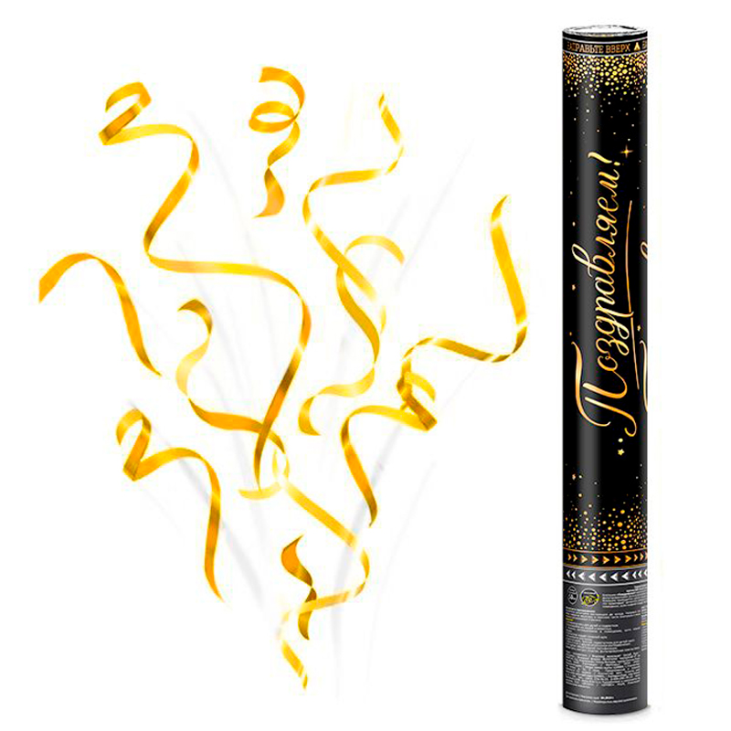 Пневмохлопушка «Поздравляем!» Серпантин 50 см с золотой печатью / 1 шт. /