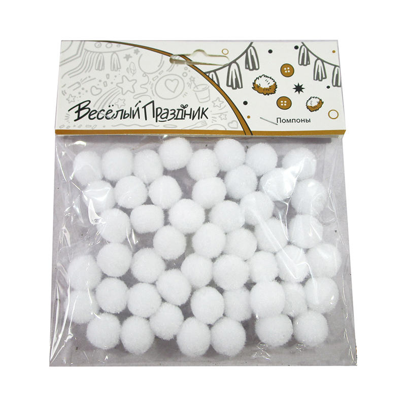 Пушистые Помпоны Белые, 50 шт. / набор /
