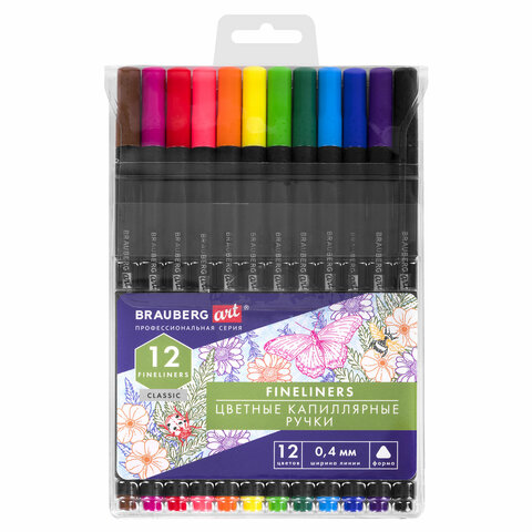 Ручки капиллярные (линеры), 12 ЦВЕТОВ, BRAUBERG ART, «Classic», трехгранные, 1 шт.