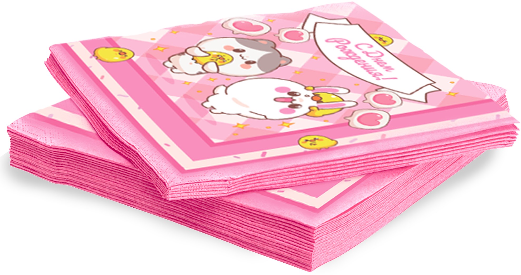 Салфетки, Кавайные зверушки, Розовый, 33*33 см, 20 шт