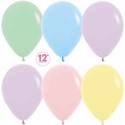 Шар (12»/30 см) Ассорти светлое (109, 120, 130, 140, 150), пастель, 12 шт.