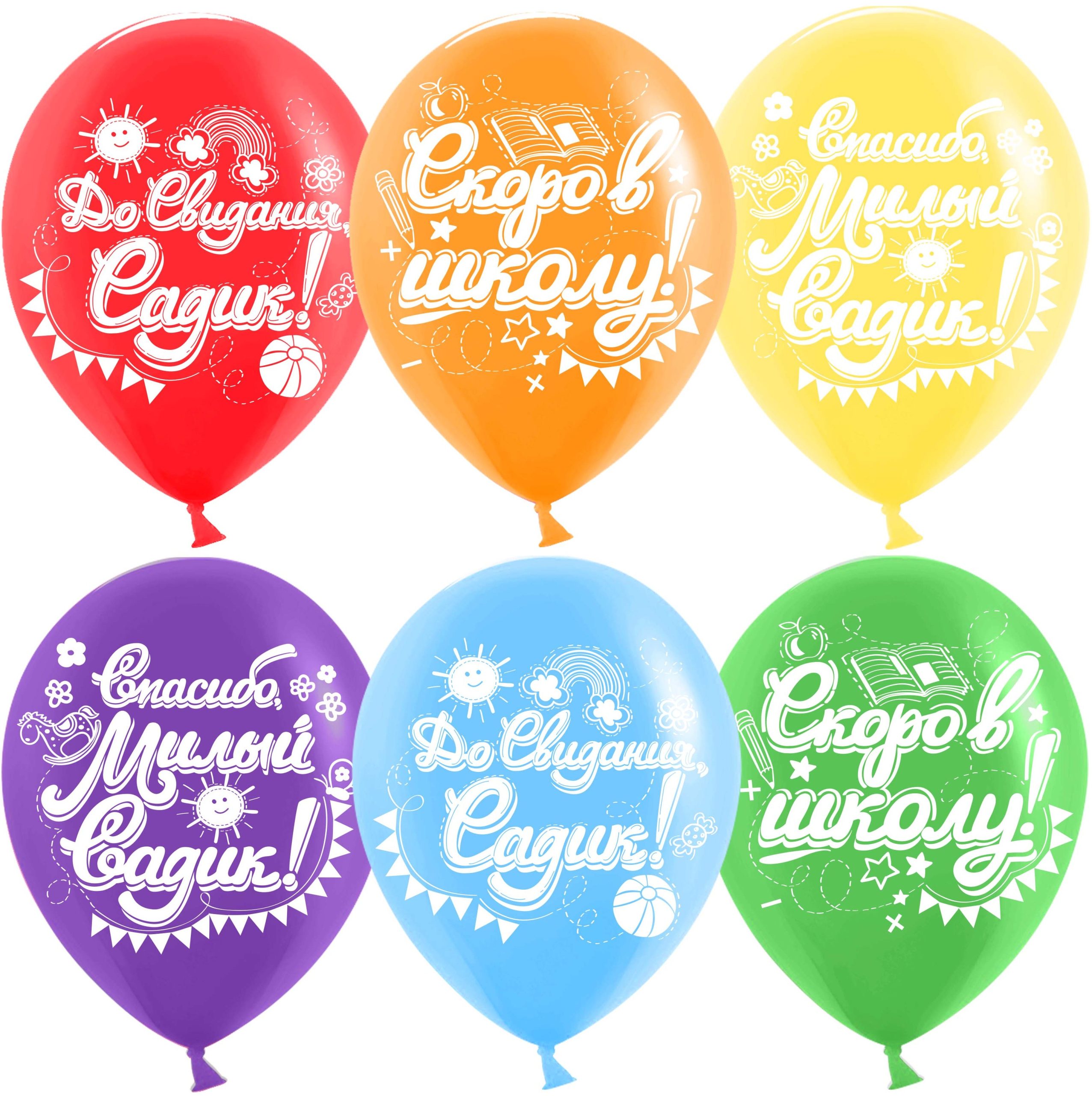 Шар (12»/30 см) До Свидания, Садик, Скоро в школу!, Ассорти, пастель, 2 ст, 25 шт.