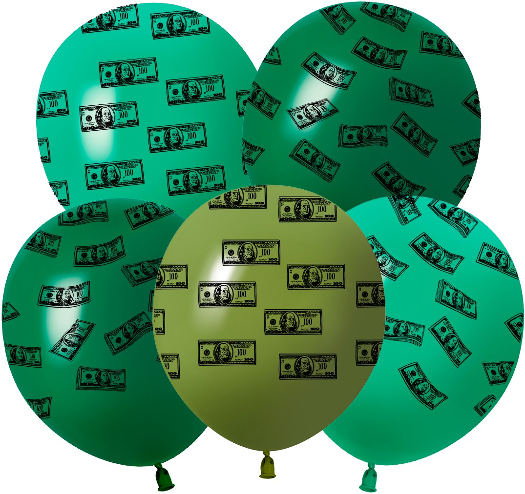 Шар (12»/30 см) Доллары, Ассорти, пастель, 5 ст, 25 шт.