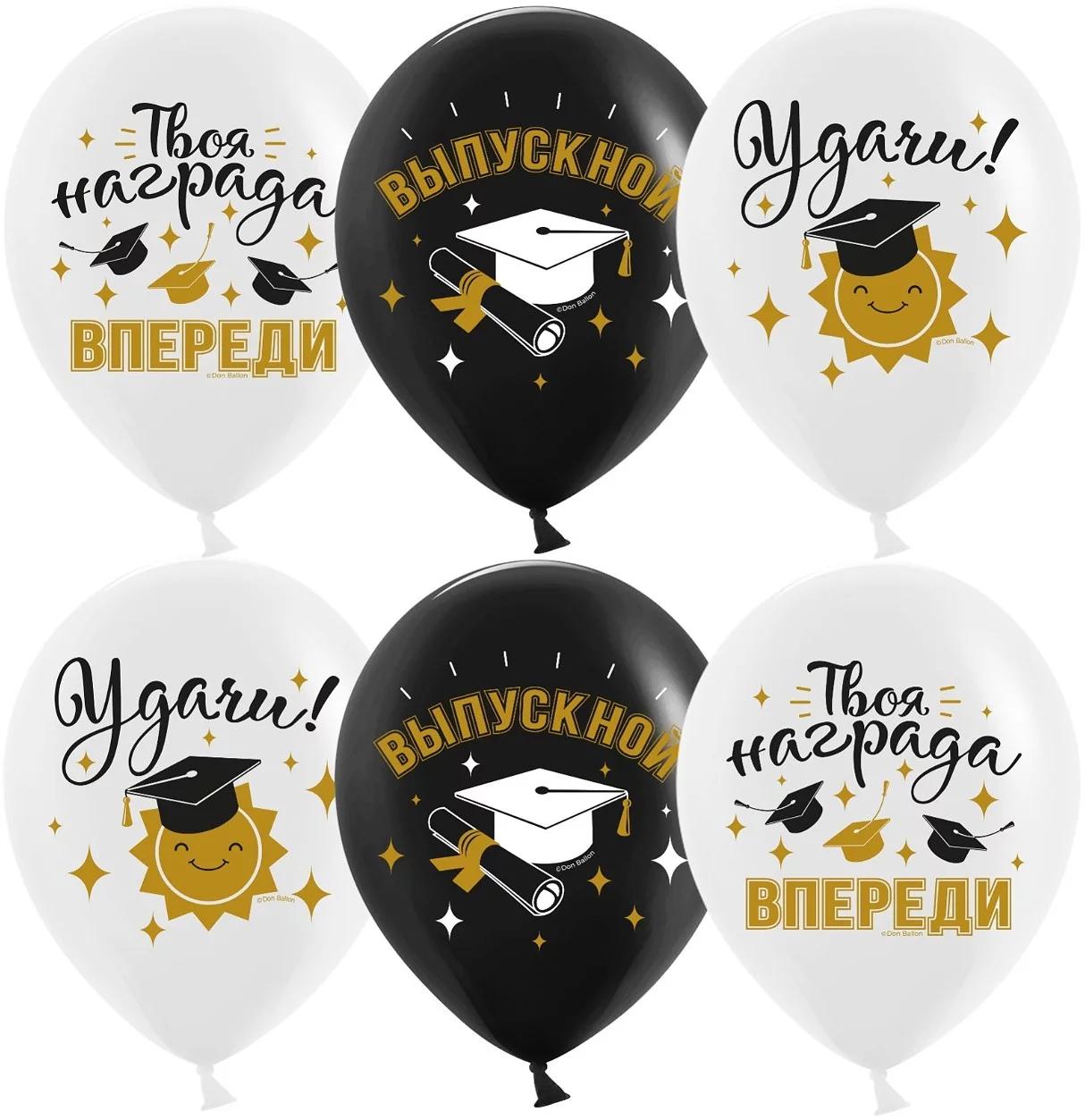 Шар (12»/30 см) Поздравляю, Выпускной!, Черный/Белый, пастель, 2 ст, 25 шт.