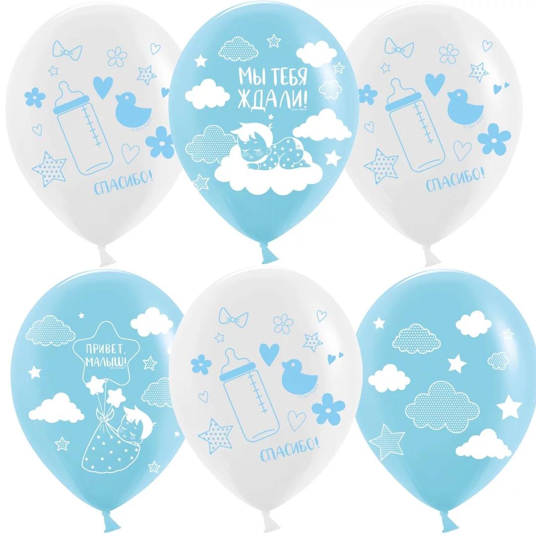 Шар (12»/30 см) Привет, Малыш!, Белый/Голубой, пастель, 2 ст, 25 шт.