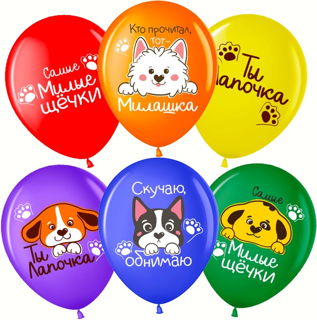 Шар (12»/30 см) Собачки, Ассорти, пастель, 1 ст, 25 шт.